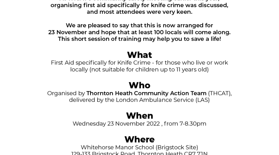At THCAT’s community safety meeting earlier this year, organising first aid specifically for knife crime was discussed, and most attendees were very keen. We are …