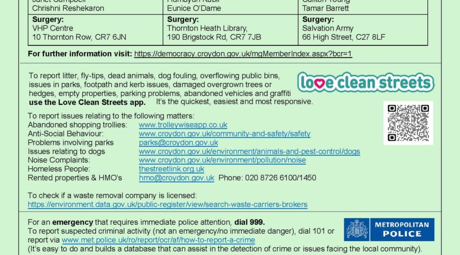 As many local residents have asked the Thornton Heath Community Action Team for guidance on reporting various issues, we’ve put together a list of useful …