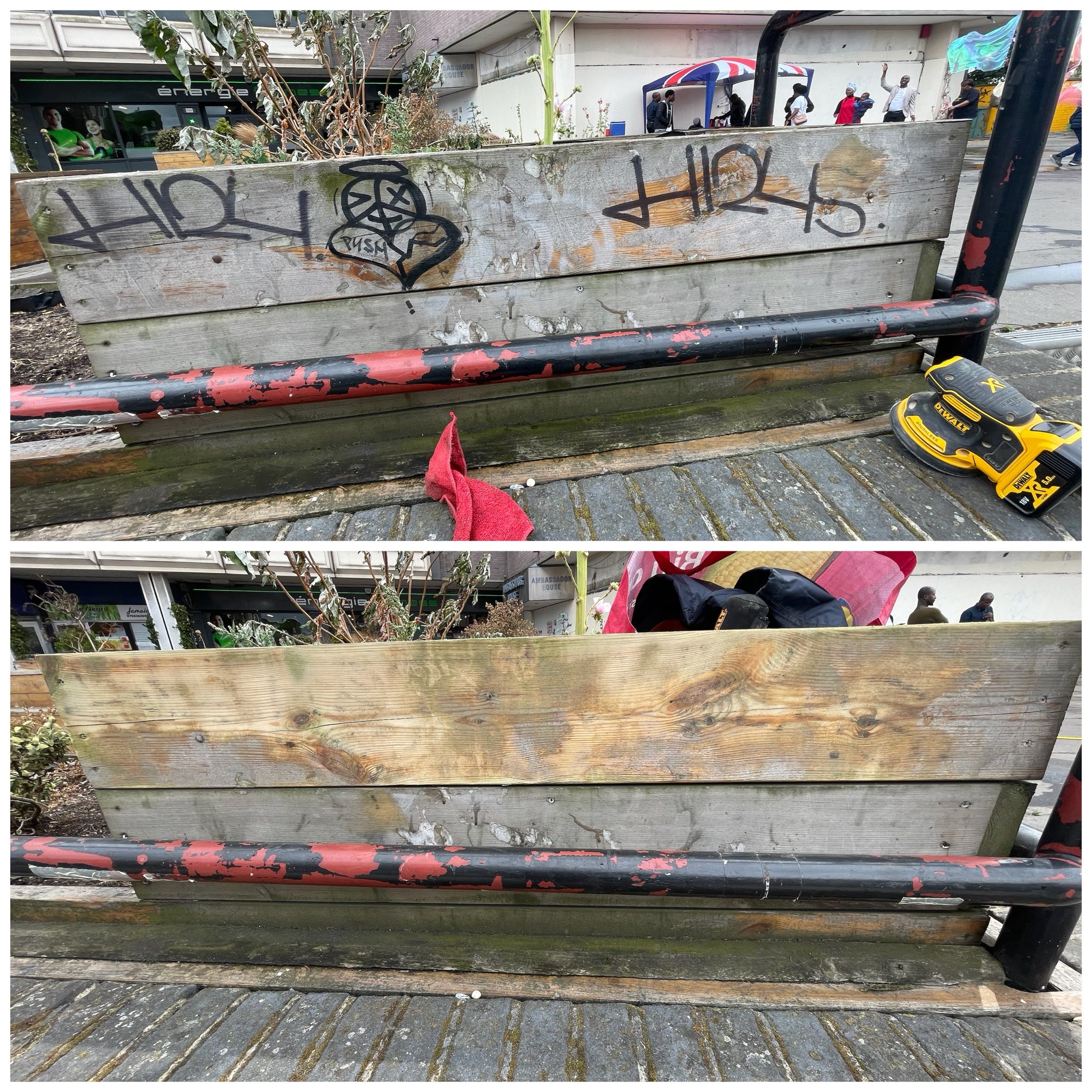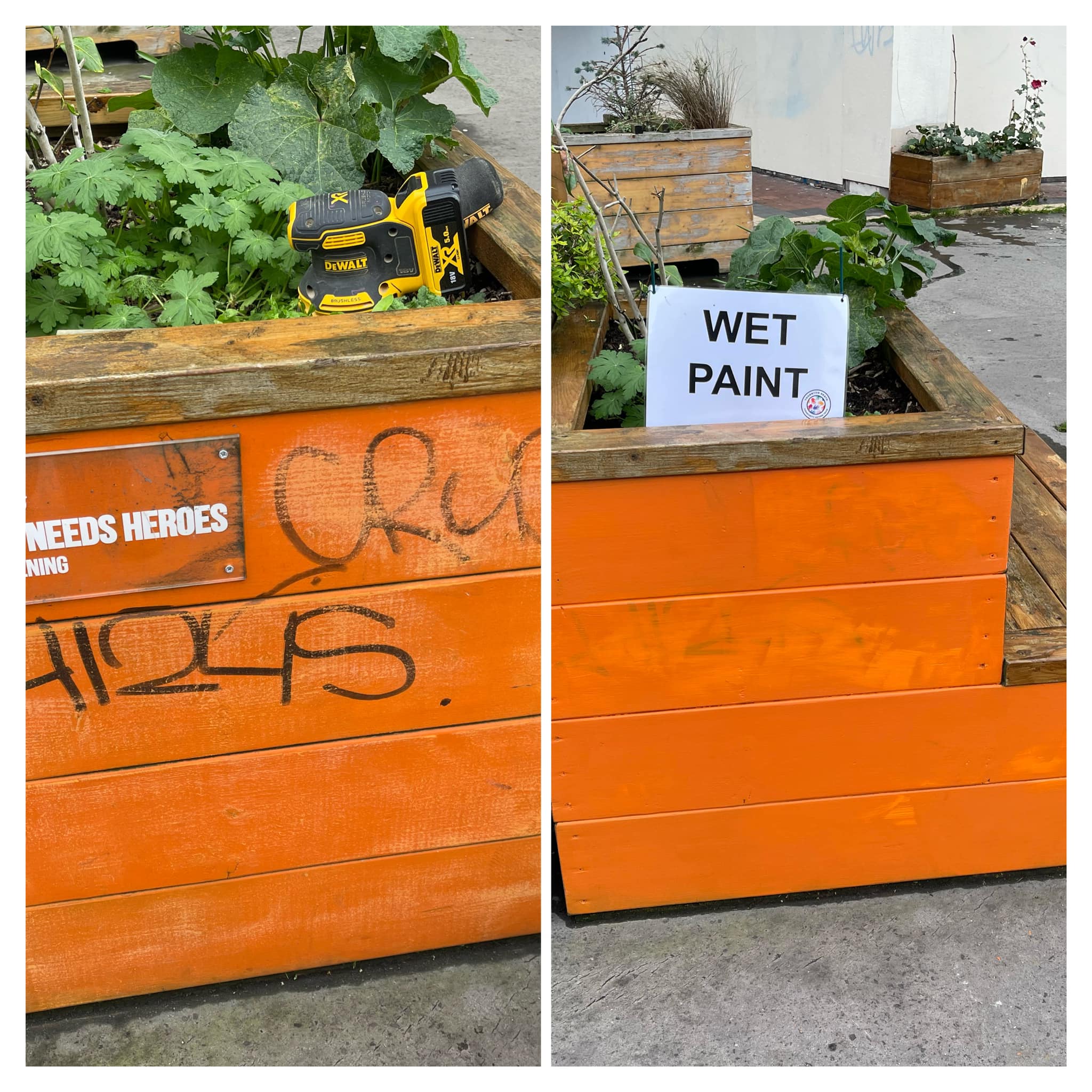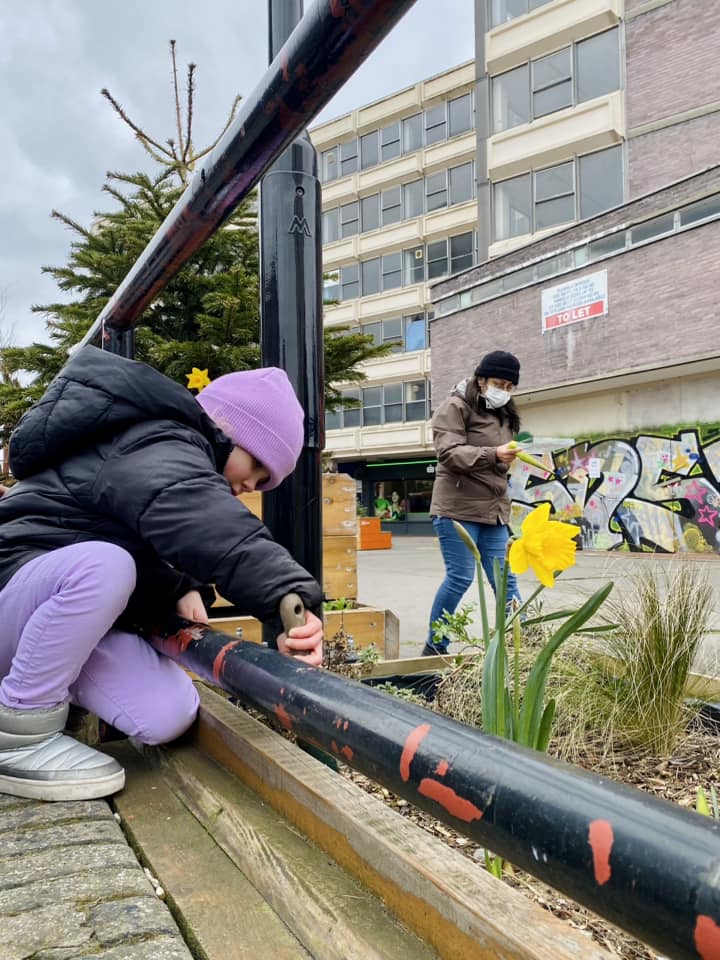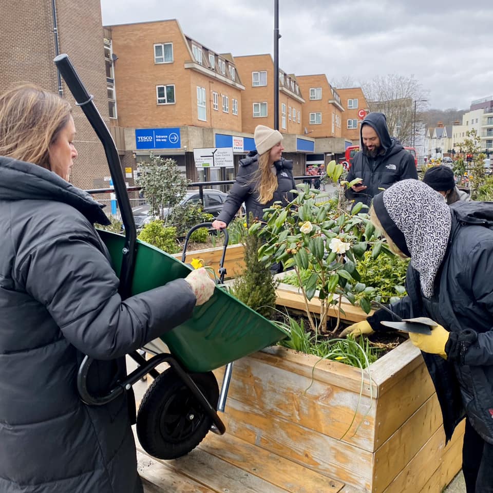 If you’d like to join in and help us look after this prominent community space, please just bring some gloves if you can, and if it’s a colder day, wrap up warm. There’s always plenty to do from planting, weeding, watering, pruning, removing graffiti, painting, varnishing, sweeping, litter-picking and chatting to passers by!